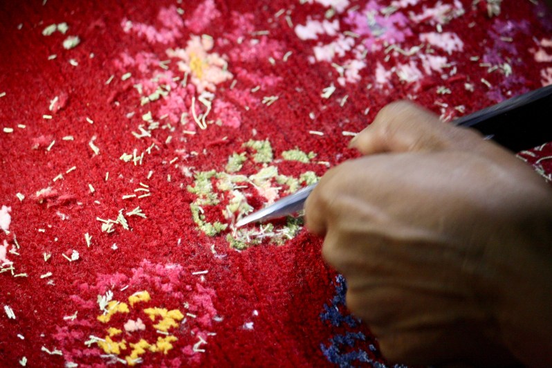 しかし、三方舎がオリジナルのブランドとして立ち上げたGOSHIMA絨毯では、オーダーメイドという方法で絨毯を多くの人の元へ届けることを選びました。もちろん手織りの絨毯なので、オーダーが入ると仕事が来たと喜ぶ職人が多くいます。GOSHIMA絨毯を織る選ばれた職人として、良きものを作ろうという気概を持って、様々な技術を持った人間が一枚の絨毯に向かってその技術を生かしていきます。