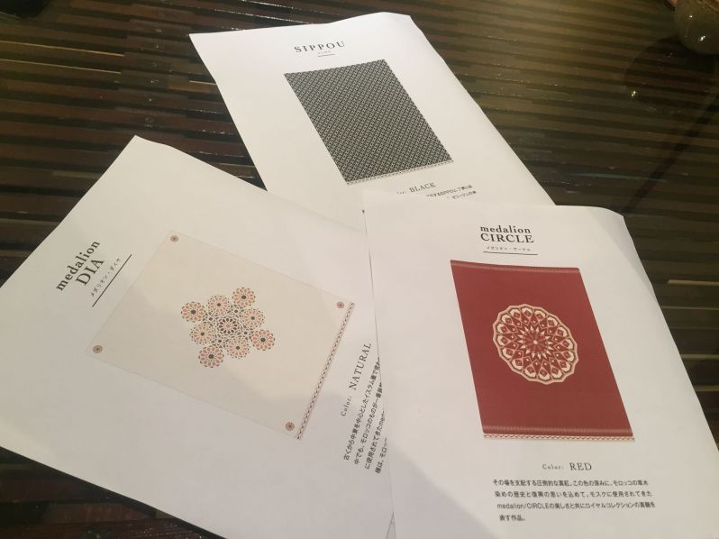 事務所のテーブルに所狭と並べられたデザインペーパー。