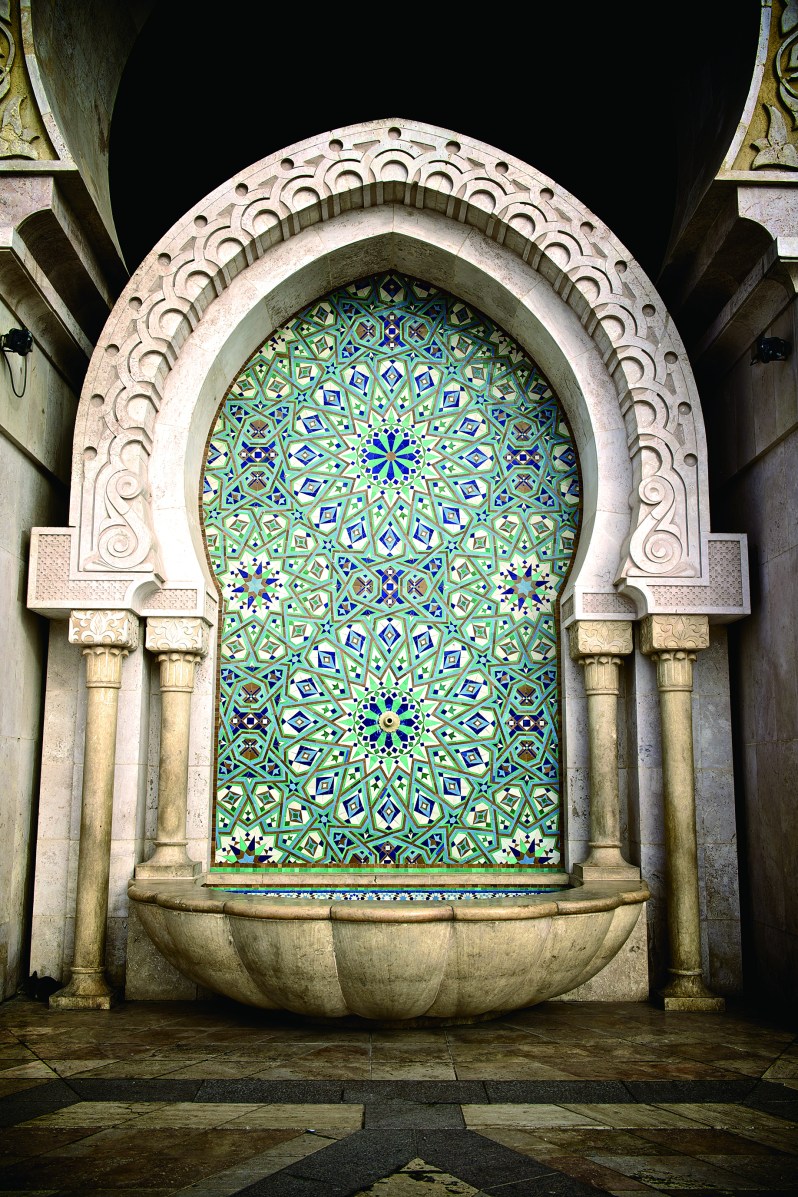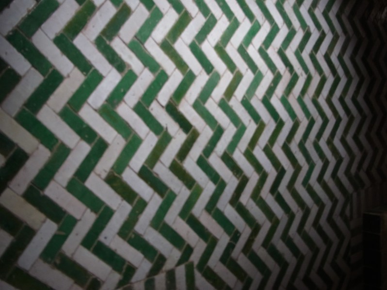 モロッコのイスラム建築にあるタイル画のシンプルかつ規則正しい配列。