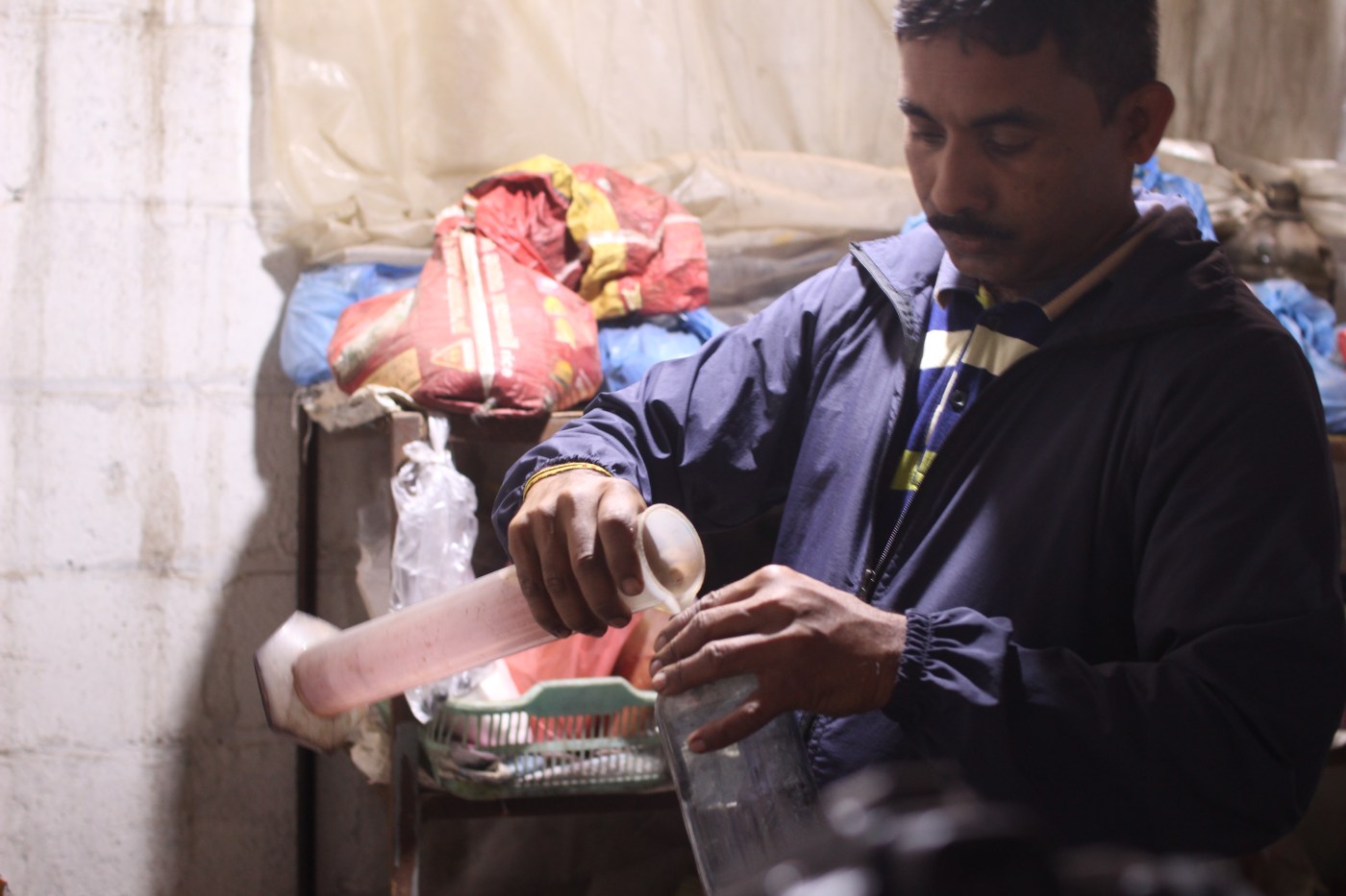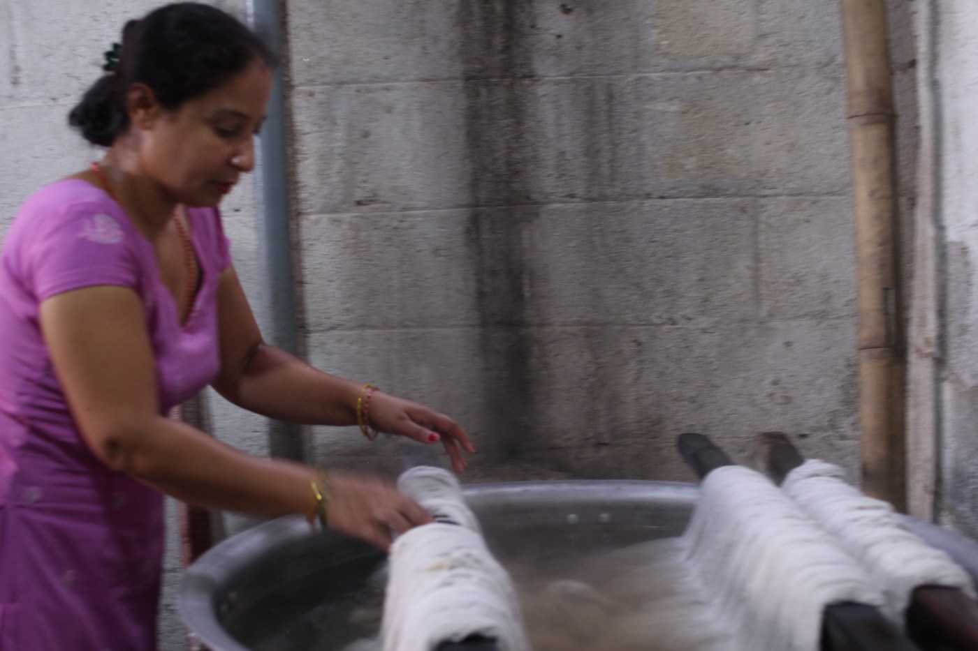 ネパールの人たちは空の下で糸を染めたり洗った絨毯を乾かしたりしています。